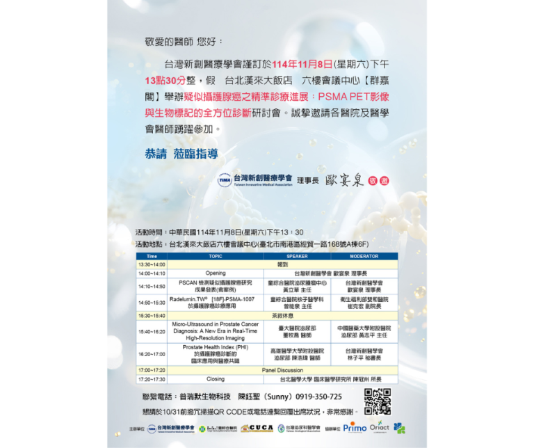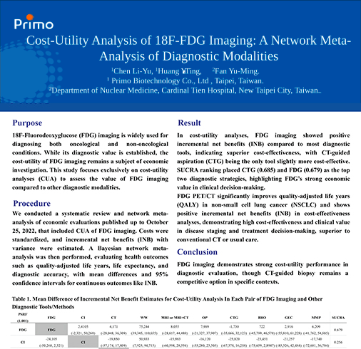 This study poster was presented at 2024 Annual Conference of Society of Nuclear Medicine, Taiwan.
