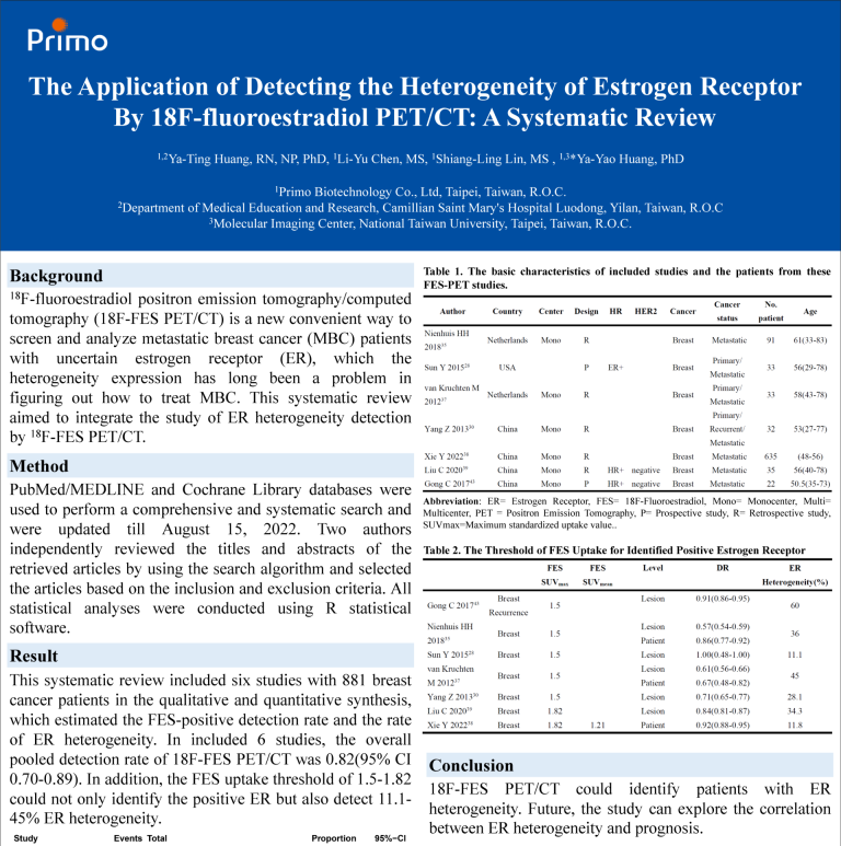 The Application of Detecting the Heterogeneity of Estrogen Receptor By 18F-fluoroestradiol PET/CT: A Systematic Review