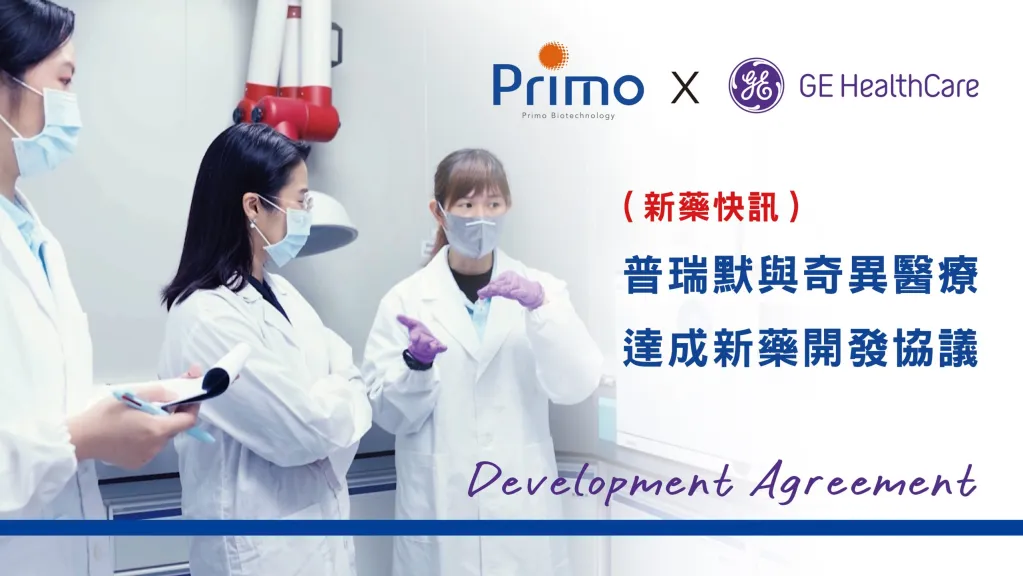 普瑞默與奇異醫療達成新藥開發合作協議 攜手打造放射藥物完整解決方案 首頁 / 最新消息 / 普瑞默與奇異醫療達成新藥開發合作協議 攜手打造放射藥物完整解決方案 新聞 2025-10-28 2025/10/28 普瑞默生技(Primo)今日宣布已與奇異醫療(GE Healthcare)達成放射藥物新藥開發合作協議,雙方將在授權、共同研發、技術引進與製造銷售等領域展開深入合作,攜手推動放射藥物的創新與臨床應用。依據協議,未來奇異醫療的新型放射藥物將優先授權給普瑞默生技於台灣開發、製造並銷售,而普瑞默生技與奇異醫療合作開發之放射藥物也將優先供應奇異醫療的客戶,以期共同造福台灣醫療。 此合作關係源自雙方長期的緊密互動。早在2023年,普瑞默與奇異醫療的合作起源於共同引進國外先進放射製藥設備並建置符合PIC/S GMP放射藥廠及而開始,並由奇異醫療全球總部加速器與核醫放射製藥事業部全球行銷總監 Uno Zetterberg 來台與普瑞默簽訂合作備忘錄,奠定在放射藥物自動化製造解決方案與放射藥廠人才交流的深厚基礎。 普瑞默生技:台灣放射藥物新藥的領航者 作為台灣新興的放射藥物新藥開發領導者,普瑞默擁有多項核心專利與自動化合成技術,並熟稔國際與台灣法規要求,重視人員安全及品質管理。公司已取得 PIC/S GMP 與 GDP 雙重認證及 FDG 藥證,並持續引進最新治療用放射性同位素,積極與醫療機構合作臨床試驗,提供從早期研發到商業化製造的完整服務鏈。此合作協議,普瑞默將成為奇異醫療在台灣授權開發藥物的優先夥伴,不僅擴展普瑞默的放射藥物多樣性,也將讓台灣病患有機會優先接觸並受惠於最新一代的放射配體診療藥物,推動精準醫療邁向國際水準。 奇異醫療:全球醫學影像的整合專家 奇異醫療在醫學影像領域具備領先的設備、藥物與 AI 整合解決方案,並專注於多項放射藥物的診斷應用,包括冠狀動脈疾病、阿茲海默症、帕金森氏症的影像診斷,以及復發或轉移性乳癌腫瘤雌激素受體的診斷藥物。此次與普瑞默的合作,將使奇異醫療進一步整合其影像診斷與放射藥物的專業優勢,為客戶提供更完整的一站式醫療解決方案。 普瑞默生技與奇異醫療的攜手,標誌著台灣在放射藥物創新與國際合作上的新里程碑,預期將加速精準醫療與核醫診斷治療的普及,為患者帶來更高效與安全的臨床選擇。